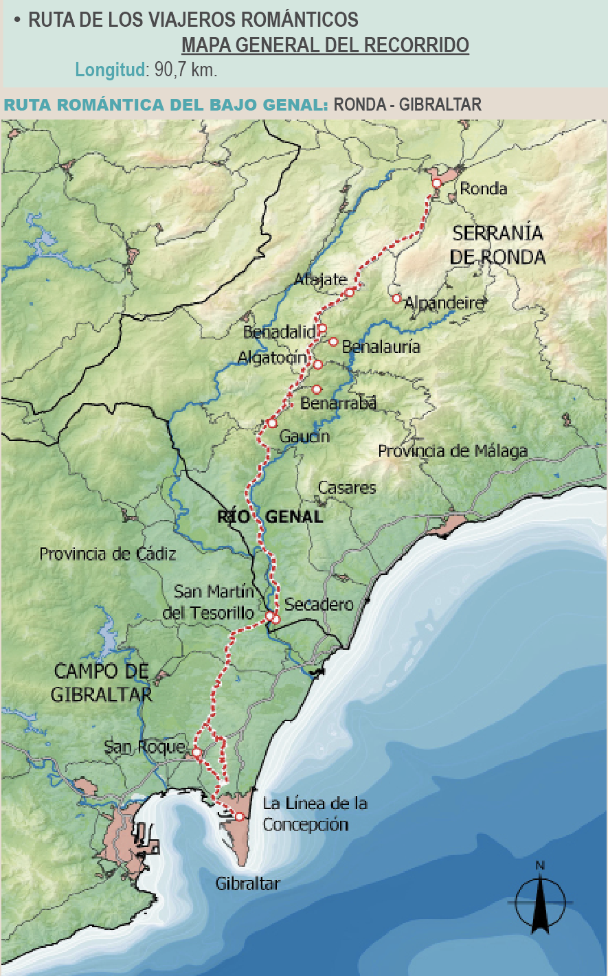 En la Ruta Romántica del Bajo Genal podemos elegir entre dos opciones diferenciadas, tanto de llegada o salida de Ronda o de Gibraltar o de la Línea de la Concepción. En en nuestro ‘Libro de Viaje’ hemos escogido como punto de salida a la ciudad de Ronda para concluir en Gibraltar. En esta ruta recorreremos territorios de Ronda, Alpandeire, Atajate, Benadalid, Benalauría, Algatocín, Benarrabá, Gaucín y Casares; y del Campo de Gibraltar San Martín del Tesorillo, San Roque, La línea de la Concepción y Gibraltar. Sin duda uno de los enclaves con más fuerte identidad y belleza de España, además de poseer uno de los ecosistemas más ricos de Andalucía.